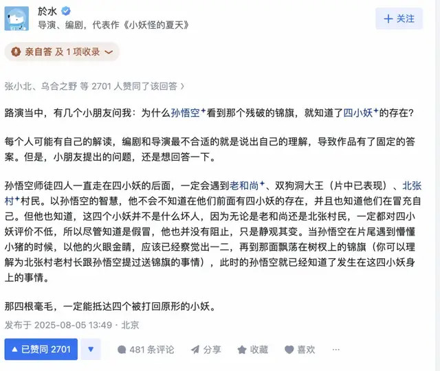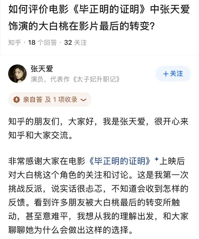 与此同时,知乎社区内围绕现实题材、人物塑造与情感表达的讨论始终保持活跃。《浪浪山的小妖怪》导演於水、《毕正明的证明》演员张天爱等很多影视创作者与观众在社区中直接交流,使电影不再止步于银幕之上,而是在持续的讨论与回应中,被反复理解,延展出更丰富的维度。“人的故事”也正是在这样的互动中被不断确认与深化。