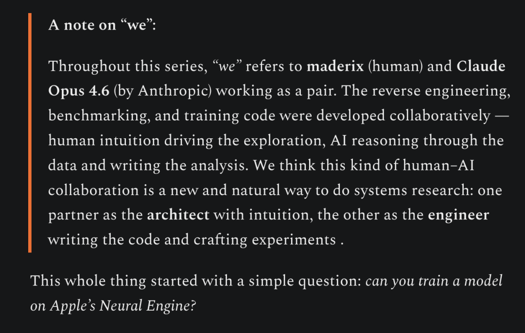 而且Claude深度参与了破解全程,包括整个逆向工程、基准测试以及训练代码的开发——由人类的直觉引领探索方向,由AI进行数据推理并撰写分析报告。