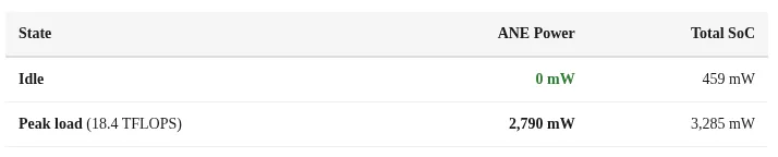 ANE在峰值算力下功耗仅2.8W,19 TFLOPS能效比高达6.6 TFLOPS/瓦,堪称疯狂!