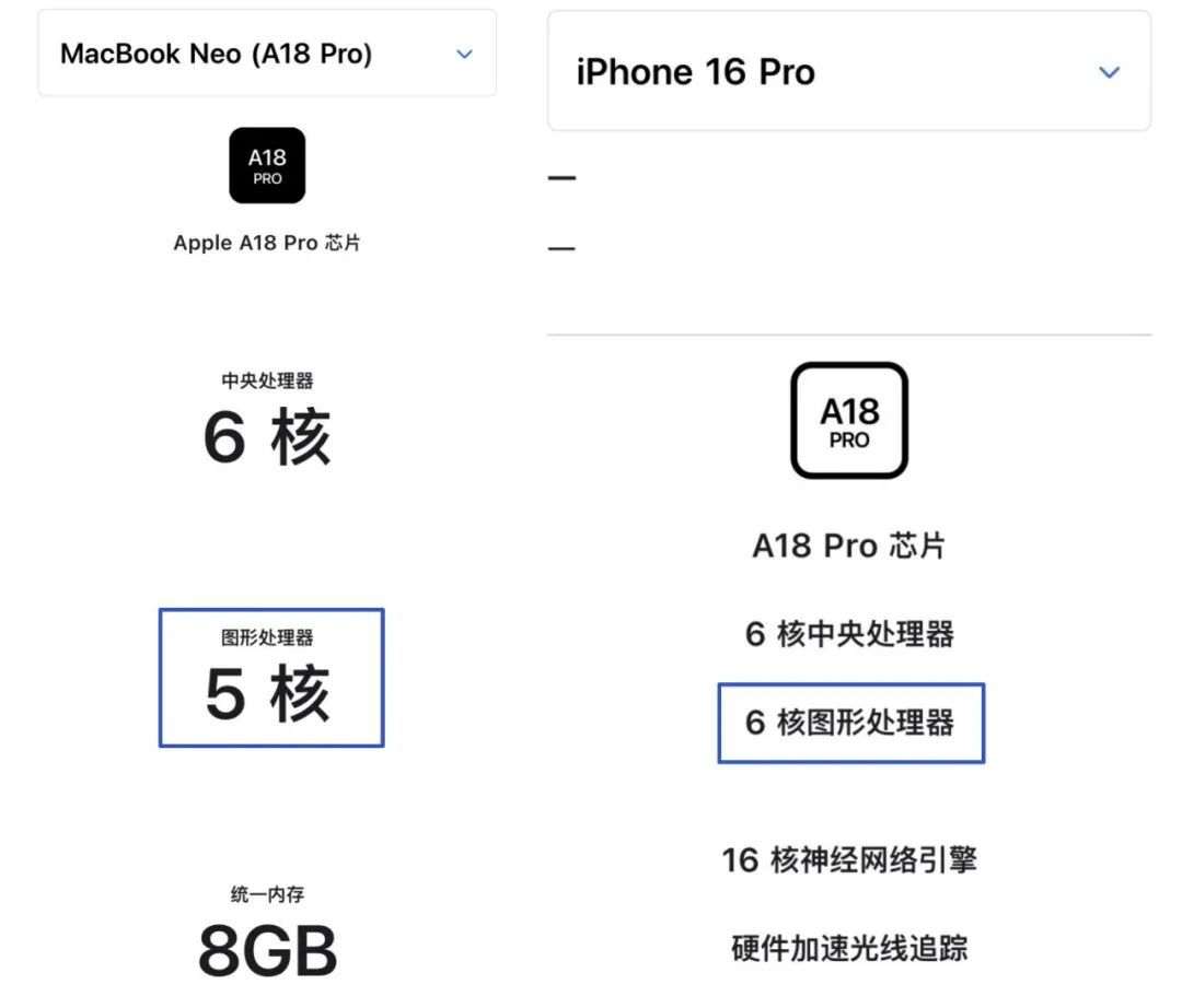 当然,最有争议的还是它作为一台 Mac 搭载的是原本用在 iPhone 上的 A18 Pro 芯片,还不是最新的 A 系列芯片,只有 8GB 运行内存。