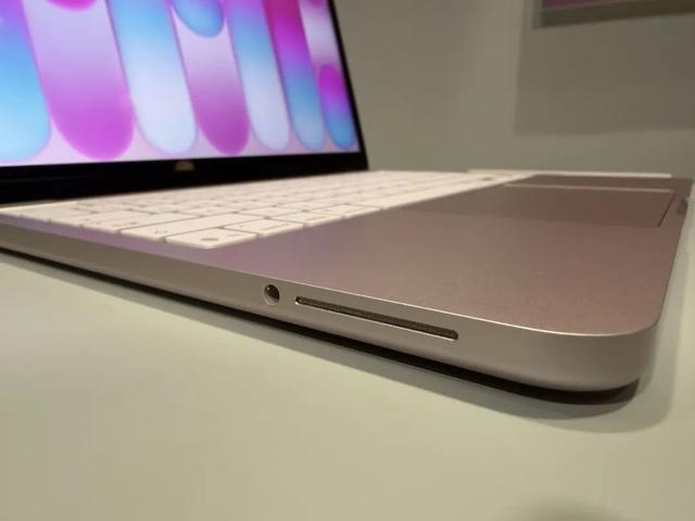 这还只是开胃小菜,如果你看机身两侧,就会发现它有两个专门的扬声器开孔,而不像 MacBook Air 把扬声器藏在了转轴处。